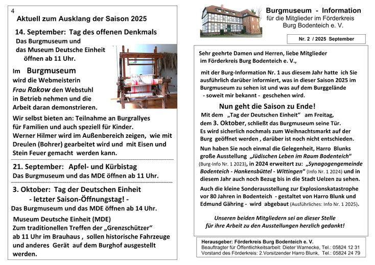 Postanschrift: Förderkreis Burg Bodenteich e.V.,