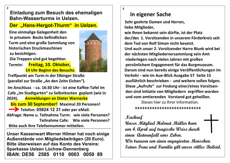 2. Vorsitzender, Harro Blunk, Tel. 05824/2479,